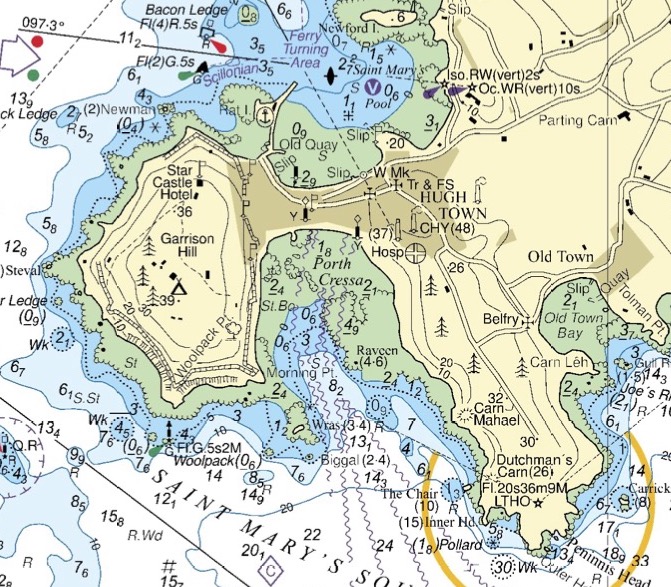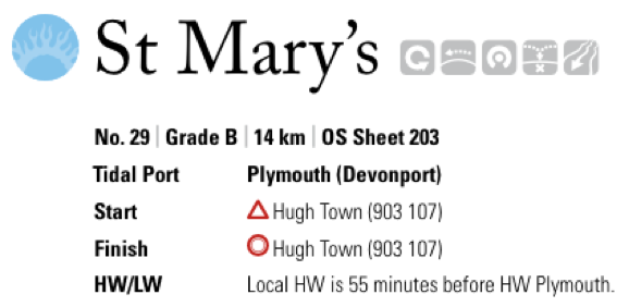 Such detailed data is not available everywhere that we would wish to paddle. To overcome this problem, reference books quote tidal constants for other locations. These are either added or subtracted to times of high and low water at standard ports to give local high and low water times. For example, this extract from a paddling guidebook tells us when HW and LW will occur at a location in the Isles of Scilly.
