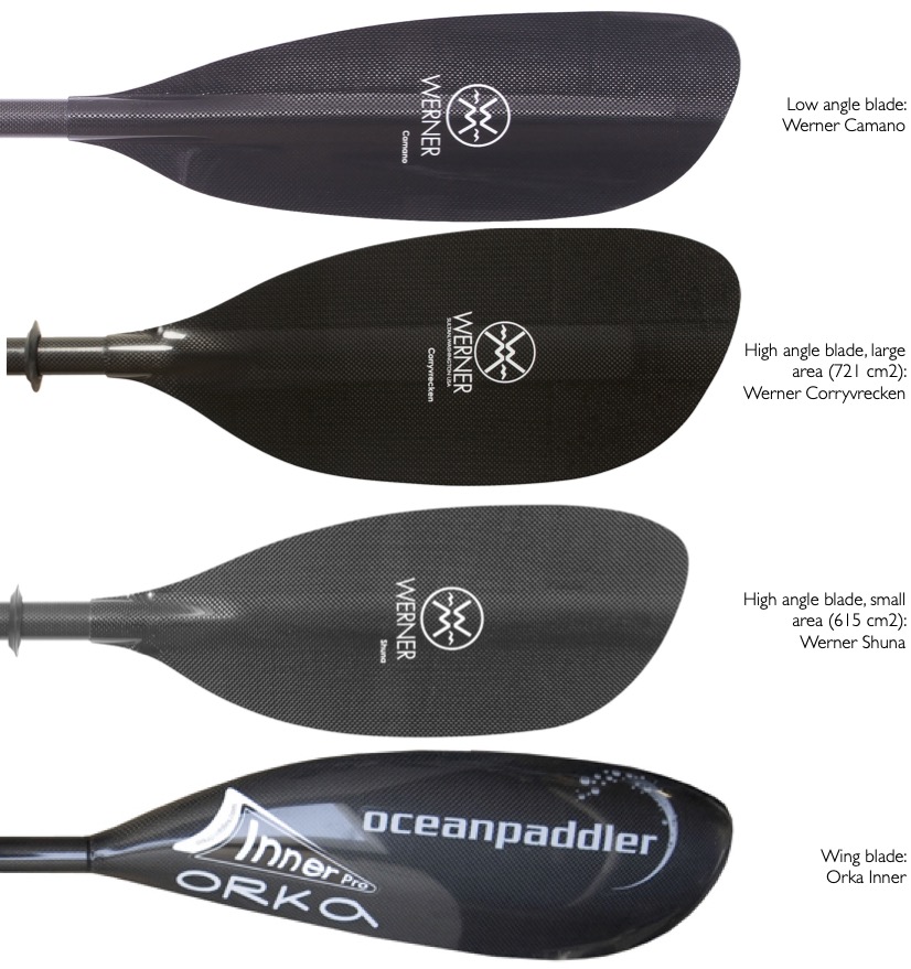 High angle paddles - shorter and fatter - are intended for a more efficient ‘high angle’ stroke where the top hand comes to forehead height.
