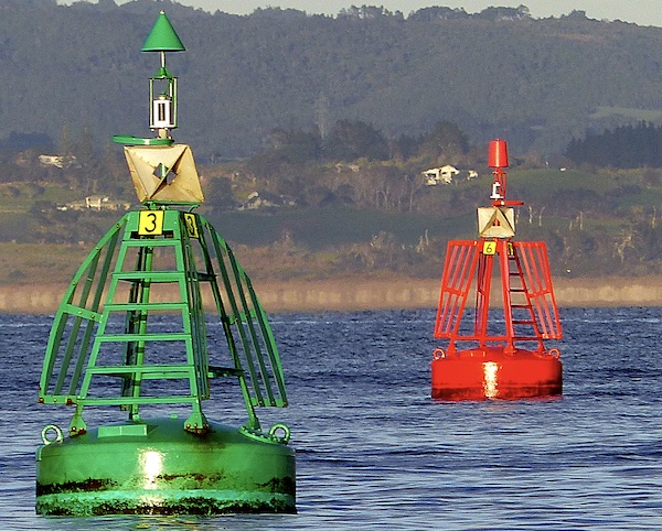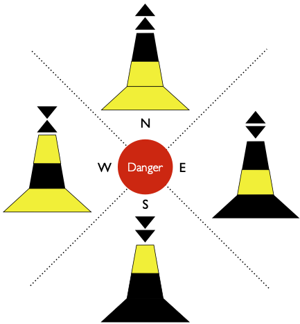 Large vessels can be a hazard in some areas that we paddle in. They travel remarkably fast, and are often unable to maneuver to avoid things due to their size, or because they’re travelling in a narrow deep water channel. Clearly, kayakers need to keep out of the way. It’s worth understanding a little about the navigational marks that large vessels use so that we can understand where they are likely to go.