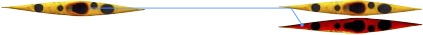 A paddler incapacitated by injury (e.g. shoulder dislocation) or seasickness may not be stable enough to be towed alone. Instead, we raft the incapacitated paddler up with another group member, who can hold them upright and keep an eye on them. The towline is passed under the assistant’s decklines and clipped onto the victim’s decklines. This arrangement enables the assistant to slide forward to unclip the tow if needed.
